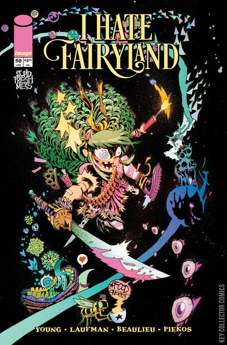 It's an issue ten years in the making... That's right, muffin fluffers: I HATE FAIRYLAND is hitting the monumental milestone Issue #50! Join Skottie Young, Derek Laufman, the IHF team and a roster of the best cover artists in the industry for a celebration of all things Gert, and a tantalizing tease at the NEXT ten years of our cutesy green-haired psycho's adventures in Fairyland…
