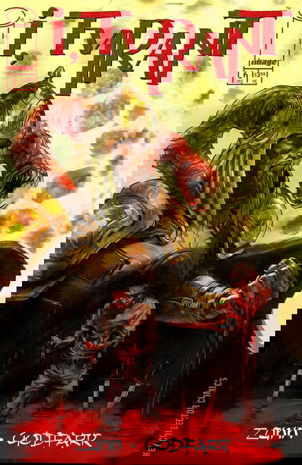 NEW STORY ARC “A PHANTASMIK APOCALYPTO BEGINS” — The Crown Eats Men. Hafez is steeped in a cunning poison. Son of Reza, he’s under the sway of Zahhak, the serpent-shouldered king of Persia. Reza rages as the boy teeters between myth-spinning prodigy and fever-dream of comic-book tropes. Day one on the throne, Zahhak shreds royal ceremony and butchers his reign before it begins.