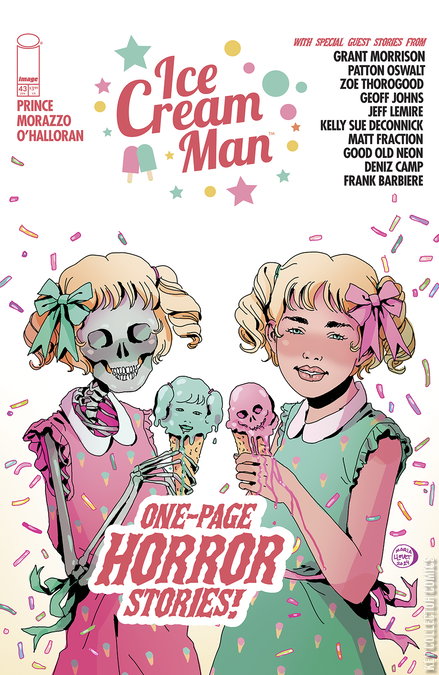 “One Page Horror Stories” It’s a star-studded, make-your-jaw-drop-to-the-floor issue of ICE CREAM MAN! The challenge: make a comics horror story that’s only ONE PAGE LONG. And boy, did we find some amazing folks ready to take that one on! Issue 43 will feature one-page horror yarns (all drawn by MORAZZO and O'HALLORAN) from: -GRANT MORRISON -PATTON OSWALT -GEOFF JOHNS -KELLY SUE DeCONNICK -JEFF LEMIRE -MATT FRACTION -ZOE THOROGOOD -and more! There will also, of course, be plenty of weird one-pagers from W. MAXWELL PRINCE and Team ICM—we wouldn’t want to miss out on all the fun!