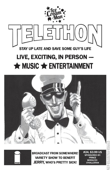"TELETHON"-We'll be up all night, trying to raise $3.99 to save this guy's life.