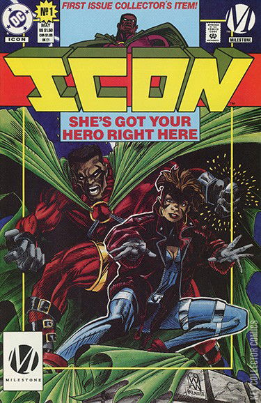 In 1839, an alien starliner malfunctioned and exploded. A jettisoned life pod crashed in a cotton field in the Deep South. The pod was equipped with a unique survival mechanism that was programmed to configure its passenger's genetic structure to match whatever life form it first encountered. And so it happened that Miriam, the slave who discovered the pod, found inside a baby boy with her mother's eyes. Today, the alien is still alive, in the guise of successful attorney Augustus Freeman IV of Dakota. Still marooned, he waits for Earth's technology to catch up to his life pod's. Secretly possessing superpowers, he quietly helps people in need, until recent events in the city of Dakota - and the arguments of a certain opinionated young woman - compel him to become more than just a silent friend to the community. He dons a costume to become Icon, the hero of Dakota.