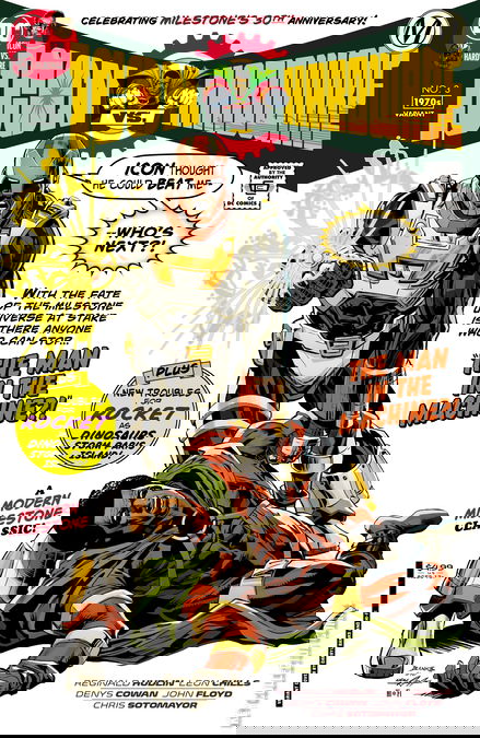 Hardware's rampant tampering with the timeline is weakening the boundaries of reality and unraveling not just his own history, but the history of the entire Milestone Universe...and as the cracks in the walls of creation start to show, a terrifying threat emerges from a most unexpected place! The ending of this issue will shock you!