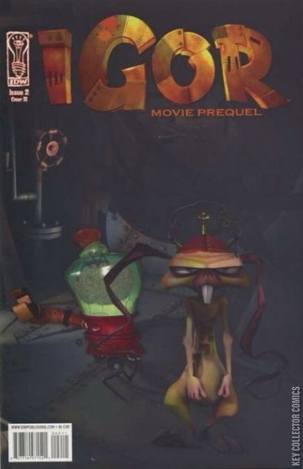 The upcoming animated feature film Igor will feature the voices of John Cleese, John Cusack, and Steve Buscemi, and this series of all-new, original stories will serve as a lead-in to the movie by introducing you to Igor, Scamper, Brain, and all the other delightfully twisted characters from the land of Malaria. In IDW's second issue, our intrepid hero (assisted by Scamper, the immortal rabbit), continues his quest to become the first Igor to enter the Evil Science Fair. Presented for the first time anywhere, see the origin of Brain, who is... well, a brain in a jar. On wheels. With a mechanical arm. But unfortunately, not much smarts.