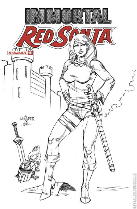 Sonja...as you have never witnessed! It is a time of British legend! A young Red Sonja, cursed by mysterious chainmail, seeks counsel with the mysterious MERLIN. She seeks to be rid of her curse, in order to forge a future of fantasy and adventure! She will be pursued by the loathsome GREEN KNIGHT, and if she survives and arrives at the Castle Of Merlin, what she finds would be infinitely more than she bargained for. By the all-star creative team of DAN ABNETT (Justice League Odyssey) and ALESSANDRO MIRACOLO (Red Sonja)!