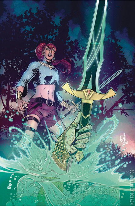 Sonja...as you have never witnessed! It is a time of British legend! A young Red Sonja, cursed by mysterious chainmail, seeks counsel with the mysterious MERLIN. She seeks to be rid of her curse, in order to forge a future of fantasy and adventure! She will be pursued by the loathsome GREEN KNIGHT, and if she survives and arrives at the Castle Of Merlin, what she finds would be infinitely more than she bargained for. By the all-star creative team of DAN ABNETT (Justice League Odyssey) and ALESSANDRO MIRACOLO (Red Sonja)!