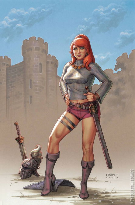 Sonja...as you have never witnessed! It is a time of British legend! A young Red Sonja, cursed by mysterious chainmail, seeks counsel with the mysterious MERLIN. She seeks to be rid of her curse, in order to forge a future of fantasy and adventure! She will be pursued by the loathsome GREEN KNIGHT, and if she survives and arrives at the Castle Of Merlin, what she finds would be infinitely more than she bargained for. By the all-star creative team of DAN ABNETT (Justice League Odyssey) and ALESSANDRO MIRACOLO (Red Sonja)!