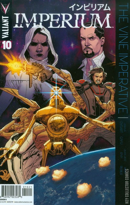 "THE VINE IMPERATIVE" boils over! The world is suspended within balances of power. Tense and delicate terms of peace, crisscrossing and humming just below the surface. The Vine plantings, undercover alien spies of a galaxy-spanning race, hold positions of infl uence all over the planet. Toyo Harada, Earth's most unstoppable psiot, amassed a bedrock of power through his corporate, political, and super-powered maneuverings. A tenuous détente has long held between the slumbering giants, each with the world held loosely in their grip. Until now.