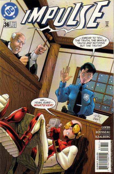 Impulse shaves all his hair off and uses a wig to put on while he's Bart. Bart is part of the court session case of the toxic waste dumpers. Impulse meets the Song of Justice.