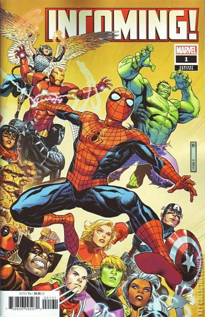 INCOMING! ONE WILL UNITE THEM! A mysterious murder brings together the heroes of the Marvel Universe in the search for a killer—but no one can imagine where the trail will lead, or how it will affect everything in 2020 and beyond! Who is the victim and who is the assailant? The closing chapter to MARVEL’s 80th year, which will connect the dots of everything that happened in 2019 and propel the narrative into the year that is to come! Featuring the Avengers, the Fantastic Four, the X-Men, the Guardians of the Galaxy, Daredevil, Spider-Man, the Champions, the Agents of Atlas, Valkyrie, the Immortal Hulk, Jessica Jones, Venom, Ghost Rider, the Masked Raider and more!