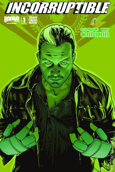 Last April BOOM! Studios showed the world that 'Mark Waid Is Evil' with the smash-hit series Irredeemable. Now, Mark Waid is Incorruptible! Super villain Max Damage had an epiphany the day The Plutonian destroyed Sky City. When The Plutonian turned his back on humanity, Max Damage decided to step up. Now Max Damage has changed his name to Max Daring and turned from his formerly selfish ways to become Incorruptible. The flip side to this year's break-out smash hit, examining the hard, difficult road to changing your ways and making a difference in the world. Covers by Tim Sale and John Cassaday.