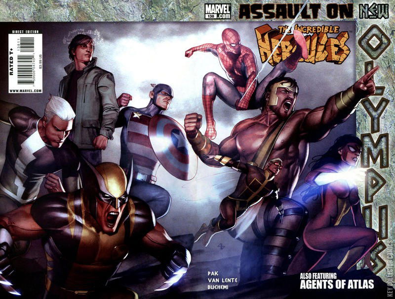 ASSAULT ON NEW OLYMPUS: Part 1 (of 4)ASSAULT ON NEW OLYMPUS: Part 1 (of 4) A battle of god-like proportions begins...right now! For months, the signs have been all over the Marvel Universe... The tension has been rising... All pointing to a single question: "What is CONTINUUM?" The answer turns out to be so deadly, so horrifying, that it will alter the course of the MU forever -- unless Hercules and the New and Mighty Avengers can stop it in time... but standing in their way is the fighting-mad ARES, God of War! "And, in our backup tale, there's no love for Venus as Aphrodite's rain of pain continues to pour on the Agents of Atlas!"