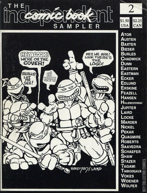 Teenage Mutant Ninja Turtles cover by Eastman & Laird (front) and Concrete by Paul Chadwick (back). Print run 4,000. Includes illustrations, comic strip samples, information, and creator bios from 32 creators in the independent comic book field. Features: Kevin Eastman & Peter Laird - Teenage Mutant Ninja Turtles Larry Marder - Beanworld Harvey Pekar - American Splendor Ben Edlund - The Tick Marc Hansen - Ralph Snart Paul Chadwick - Concrete and more!