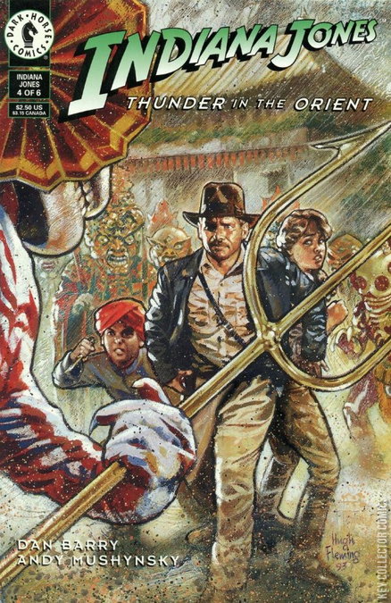 Indy and his team enter the lost city of Hindu Kush, where Buddah's ancient teachings have long been strangely mixed with pagan beliefs. Surrounded by spear-wielding Skeleton Dancers, Khamal demonstrates his knack for throwing knives once too often in the fourth exciting chapter of Indiana Jones: Thunder in the Orient, "The Devil's Paradise"!