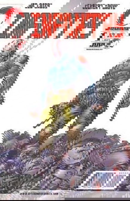 by Joe Casey & Clement Sauve Cover (A): Clement Sauve Cover (B): Sean Chen Who is Infantry? What is his agenda? Is he a new hero of the people... or merely a pawn in a larger game? The hordes of NEMESIS are America's greatest enemy, attacking it from within at its highest levels of power. What does this have to do with a mysterious super-agent, the lone survivor of a doomed experiment in human peformance enhancement? Written by Joe Casey (Wildcats, Adventures of Superman, Uncanny X- Men) and drawn by star-in-the making Clement Sauve (Wetworks), Infantry is a political thriller wrapped in an over-the-top action tale. 32pgs, FC $2.95 Cover price $2.95.