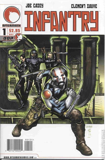 by Joe Casey & Clement Sauve Cover (A): Clement Sauve Cover (B): Sean Chen Who is Infantry? What is his agenda? Is he a new hero of the people... or merely a pawn in a larger game? The hordes of NEMESIS are America's greatest enemy, attacking it from within at its highest levels of power. What does this have to do with a mysterious super-agent, the lone survivor of a doomed experiment in human peformance enhancement? Written by Joe Casey (Wildcats, Adventures of Superman, Uncanny X- Men) and drawn by star-in-the making Clement Sauve (Wetworks), Infantry is a political thriller wrapped in an over-the-top action tale. 32pgs, FC $2.95 Cover price $2.95.