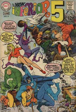 "A Little Junk... Can Go a Long Way" Herman Cramer alias the Blimp calls his friends the Inferior Five for help when a growing pile of junk buries his diner. City leaders have been unable to control the junk pile, so the super-heroes climb the to the top. At the top they discover their old foe Dr. Gruesome who has created an atomic egg which he plans to drop on the United Nations. The Inferior Five steal the egg, but Awkwardman drops it. Fortunately when it lands on some military troops it turns out to be a dud. The Inferior Five then must clean up the junk.