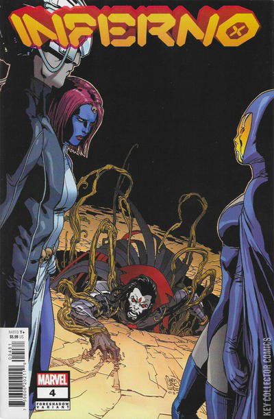 TO EMBERS! Jonathan Hickman ’s time on X-Men ends with the dramatic conclusion of one of the first and best mysteries he brought to the line. Valerio Schiti returns on art to help bring down one of the foundations of the era.