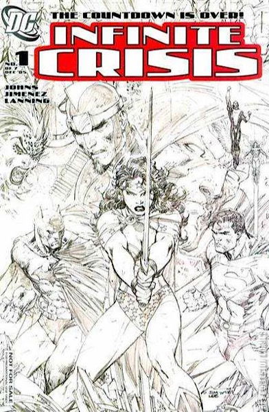 It's finally here: the comics event so massive that it built over the first half of 2005, through COUNTDOWN, DAY OF VENGEANCE, RANN/THANAGAR WAR, VILLAINS UNITED and THE OMAC PROJECT! Prepare for the dawn of the DCU's darkest day in INFINITE CRISIS, a 7-issue miniseries written by Geoff Johns ( GREEN LANTERN, JSA) with art by Phil Jimenez (OTHERWORLD, Uncanny X-Men) & Andy Lanning (OTHERWORLD) and covers by George P?rez ( CRISIS ON INFINITE EARTHS) and Jim Lee (BATMAN, SUPERMAN) & Sandra hope! The world's greatest heroes stand divided. If recent events don't tear them apart, the heroes may fall at the hands of an enemy from the past long since thought gone!