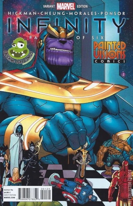 INFINITY, PART 1: INFINITY The over-sized kickoff to the years most anticipated Blockbuster summer event, changing the way you view the Marvel Universe! The outbreak of war on two fronts: Earth and Space, with our heroes torn between them. The world-shattering return of Thanos! Includes material from FREE COMIC BOOK DAY: INFINITY Continued in Avengers #18
