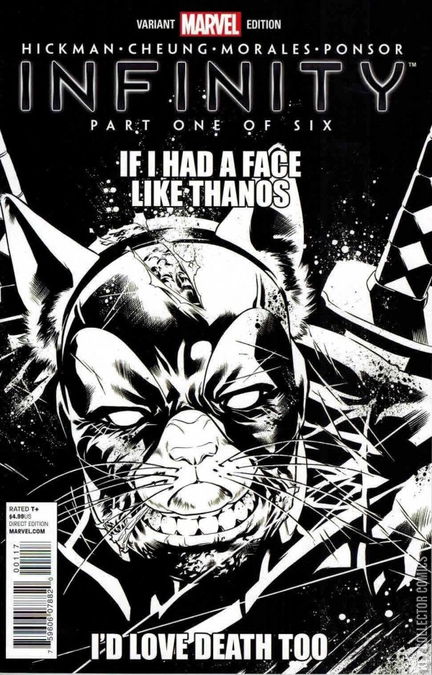INFINITY, PART 1: INFINITY The over-sized kickoff to the year’s most anticipated Blockbuster summer event, changing the way you view the Marvel Universe! The outbreak of war on two fronts: Earth and Space, with our heroes torn between them. The world-shattering return of Thanos! Includes material from FREE COMIC BOOK DAY: INFINITY Continued in Avengers #18