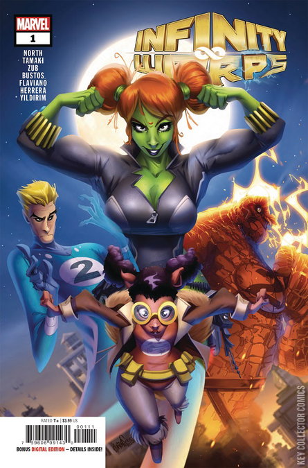 When you gaze into the warp...you get more stories of mad Two-In-One heroes! "THE TERRIFIC TWO" - Read about the Star Siblings of the Warped Universe - MISTER INVISIBLE and HOT ROCKS, the TERRIFIC TWO! "GREEN WIDOW" - Then, see how the covert programs of the Green Room created the gamma-powered GREEN WIDOW! "MOON SQUIRREL AND TIPPYSAUR" - Join MOON SQUIRREL AND TIPPYSAUR as they save the planet from the most dangerous threat it's ever faced!