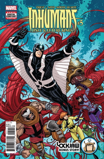 EMANCIPATION …Except that’s exactly what the young Royals have to do! Armed with the Wizard’s technology, Black Bolt, Medusa, and Maximus must return to Attilan to clear their names of treason – but their seeming ally Elisha has his own agenda! With their home in danger, the Royals must meet their destinies! But is Black Bolt ready for a king’s responsibilities? LOCKJAW: CANINE MASTER OF TIME AND SPACE IN A CHRISTMAS PERIL The final installment of the adventures of Lockjaw.