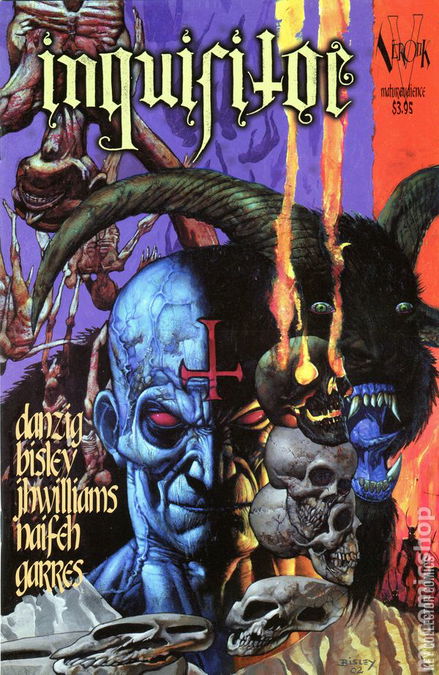 Expanding the Satanika Mythos, Verotik brings Hell's regal troublemaker and confidante, The Inquisitor, in his first-ever solo book! Featuring three separate stories by Glenn Danzig, with art by Ted Naifeh (Gloom Cookie, Gunwitch), J.H. Williams III (Promethea), and Rafa Garres (Lobo, Judge Dredd). All with chapter headings by the Mighty "Biz," Simon Bisley! Painted cardstock covers by Simon Bisley.
