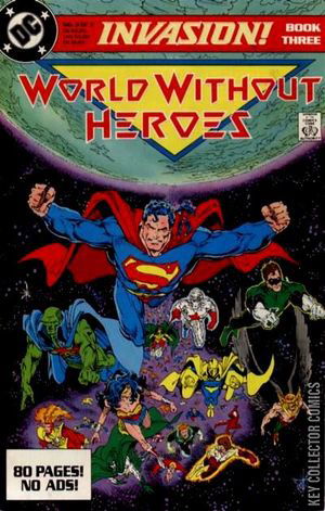 "World without Heroes!" Written by Keith Giffen and Bill Mantlo. Art by Bart Sears, Joe Rubinstein and Tom Christopher. What happens when our heroes fail? Will planet Earth fall under the sinister rule of the alien Dominators? Don't miss the exciting, pulse-pounding conclusion to the DC event of the year! Issue has no ads All issues have 80 pages