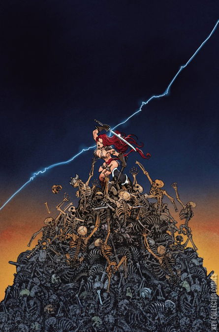 This issue is all out action as the Grim Reaper descends upon the kingdom of Erkhara in response to Red Sonja's actions, dangerously destabilizing the realm, and as for Sonja herself? Let's just say those glowing eyes of hers in issue #1 are a clue!