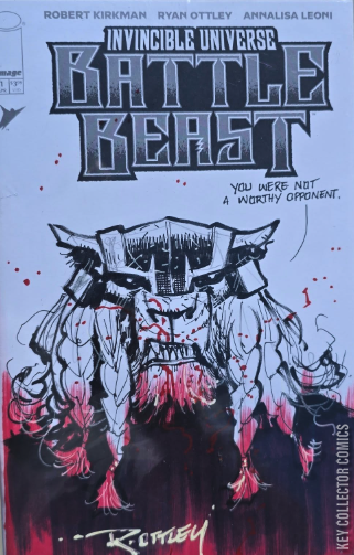 SERIES PREMIERE THE BEST NEW (NOT QUITE A) SUPERHERO SERIES IN THE UNIVERSE!� Cursed with an unquenchable thirst for violence, BATTLE BEAST searches the universe for the one warrior mightier than himand a glorious death, his only reward.� But even in a universe of mighty Viltrumites like Invincible and Omni-Man, it seems that no one may be able to stop the galaxys deadliest warrior...unless he does the unthinkable.� Superstars ROBERT KIRKMAN and RYAN OTTLEY present the most demanded** INVINCIBLE** story of all time, revealing the secret story of Battle Beast thats perfect for any long-time fan (no spoilers!) and new readers alike. COVER C Blind Bag: This is a first-of-its-kind blind bag program. The blind bags will include a chance to get ANY of the solicited covers from A through I. However, there are rare SURPRISE issues that may or may not be related to BATTLE BEAST or the Invincible Universe that can be found in these blind bags. Those SURPRISE issues will not be publicly announced in advance of the issue release.