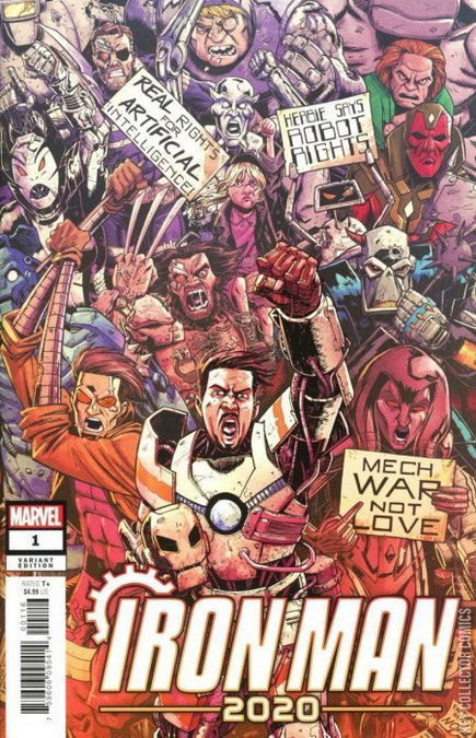 PART 1 The future is now! Artificial Intelligences presents a clear and present danger to humanity and must be brought to heel! The Robot Rebellion battles for the establishment of robot rights! And Arno Stark IS Iron Man! PLUS: Pete Woods’ main cover art will feature a 5th Color Flourescent Ink treatment!