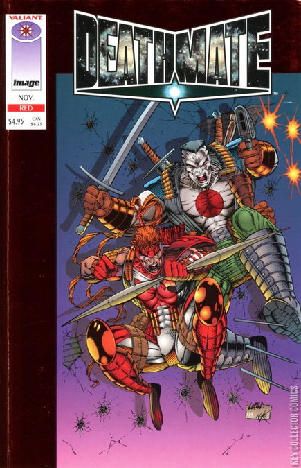 Deathmate: Red In this issue, the Image hero Prophet must gather and unite all of the heroes on this warped world. Facing his allies The villainious minions of Harda: Youngbloods (Shaft, Diehard, Dutch, Vogue, Badrock and Bloodshot) and finding new allies in the form of the heroic Knightsrike (al Simmons, Chapel, Kirby and The Eternal Warrior) He must try to unite both teams to help save both their universes!