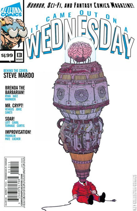 In these pages you'll find the savage daughter of a barbarian king, a not-so-super superhero, everyone's favorite living skeleton Mr. Crypt, and a group of mercs that are way in over their heads. This issue also features a radically robotic cover by Steve Mardo!