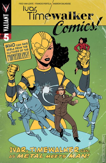 BREAKING HISTORY – PART ONE! A little confused by time travel? Don’t worry, these guys don’t really understand it either. So they’re BREAKING HISTORY! New York Times best-selling writer Fred Van Lente (ARCHER & ARMSTRONG) and rising star Francis Portela (Green Lantern Corps) kick off an all-new arc of the series that io9 calls “impressively shocking”! Dr. Neela Sethi, the inventor of time travel is captured by her evil future-self (because…time travel) and tempted to give into her rage and become the woman who may destroy history! As the BIG CRUNCH rapidly unmakes the universe around her, Neela faces a choice that may give her her life’s dreams…at the cost of the very universe itself. But take heart, inhabitants of the very universe itself, because all of our hopes lie the hands of IVAR, TIMEWALKER! But even he can’t save us alone – what happens when history’s most jaded time traveler puts together the best team he can find to save time itself? A combination of his estranged family, like his immortal brothers ARMSTRONG and THE ETERNAL WARRIOR, his inter-dimensional enemies like history’s most re-tweeted prankster THE LURKER, and a BLOODSHOT NANITE with one heck of an attitude problem are just the start of history’s most unexpected saviors. The plot to save history begins here, so don’t worry! …Well, maybe you should worry a little.