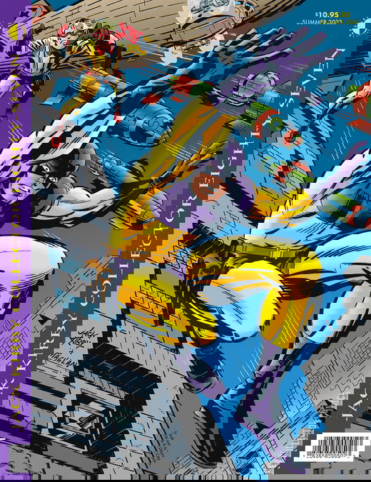 Book 'em, Jack-o! It's time for a gritty Law & Order issue! We examine how Kirby's lawmen kept the peace, from beat cops like the Newsboy Legion's Jim Harper and "Terrible" Turpin, to Western gunfighters of the 1950s and 60sand even future policemen like OMAC and Captain Victory! Also: how a Marvel cop led to the creation of Funky Flashman! Kirby's Justice Traps The Guilty and Headline Comics! Plus a pencil art gallery, our regular columnists, and Mark Evanier moderating the 2022 Kirby Tribute Panel from Comic-Con International (with Sin City's Frank Miller). All behind a cover featuring the 1940s Sandman and Sandy, inked by Mike Machlan. Edited by John Morrow.