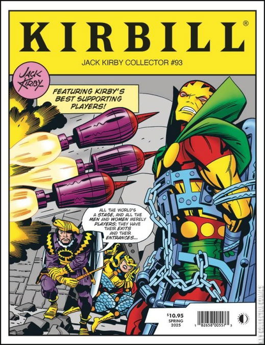 SUPPORTING PLAYERS! We give top billing to some of the lesser lights of Jack's oeuvre, including almost-major villains like Darkseid's crony Kanto the Assassin and Diablo, along with wannabe "Loser" Rodney Rumpkin, Mr. Little, the Falcon, Randu Singh, and others who finally take center stage! Plus: an unpublished 1970 interview with Jack by Shel Dorf, our regular columnists, Mark Evanier and our other regular columnists, a never-reprinted Simon & Kirby story, a pencil art gallery devoted to second-stringers and little guys bringing up the rear, and more ways of digging out the deeper meanings to be found in even Jack's minor concepts! With an unused Mister Miracle cover inked by Mike Royer.