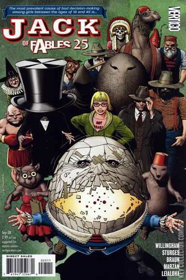 "Turning Pages" part 1! An egg will explode and a little blue pig will pontificate on weighty matters while wearing a brassiere on his head! Just another typical chapter in the life of Jack of The Tales. In this issue, however, we learn a bit more about the lovely young librarian Robin Page.