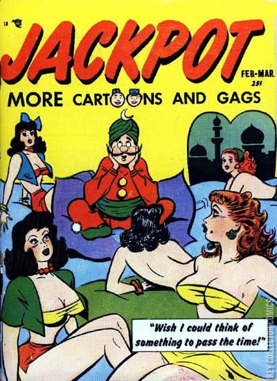 Home / Youthful / Jackpot / Jackpot #1 Youthful Released March 1952 Jackpot #1 Add to Collection Want It Synopsis No synopsis available. Issue 1 of 12 Add to Collection Buy it on eBay Buy on eBay Low $25 Mid $75 High $250 Synopsis No synopsis available. Details Series Jackpot Cover Date March 1952 Pages N/A UPC N/A Cover Price $0.25 Final Order Cutoff N/A Creators No creators listed. Price Guide Log in or subscribe to access detailed graded price information and market insights. Log In Subscribe