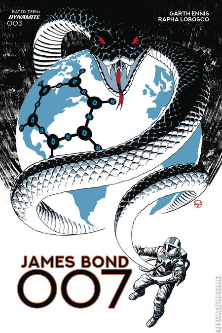 Inimitable author GARTH ENNIS accelerates the action in his inaugural James Bond tale with part three of 'Your Cold, Cold Heart!' The hunt for the stolen STALVODA formula has led Bond into orbit, where he meets a man from the project's shady past - but 007 soon learns he's not the only killer in space. Meanwhile, back on Earth, Moneypenny suddenly finds she's also a target! Featuring newly declassified cover art by DAVE JOHNSON (100 Bullets, Superman: Red Son, Deadpool) and eyes-only interiors by 007 veteran RAPHA LOBOSCO (James Bond: Black Box), James Bond: 007 #3 continues the 10-year celebration of James Bond comics at Dynamite! ALL COVERS CARDSTOCK
