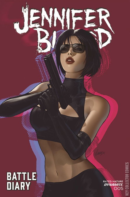 In this climactic issue, the Volk and the Crooked Cross gangs have gotten hold of Jennifer Blood's Battle Diary and figured out that she's been playing them against each other this whole time. Now they've got her cornered and marked for death - just the way she likes it! Forensics expert FRED VAN LENTE (Marvel Zombies) and crime scene photographer ROBERT CAREY (The Outsiders) deliver a comprehensive postmortem in Jennifer Blood: Battle Diary #5 - featuring additional image analyses from CAREY, JOSEPH MICHAEL LINSNER, and LESLEY 'LEIRIX' LI! ALL COVERS CARDSTOCK