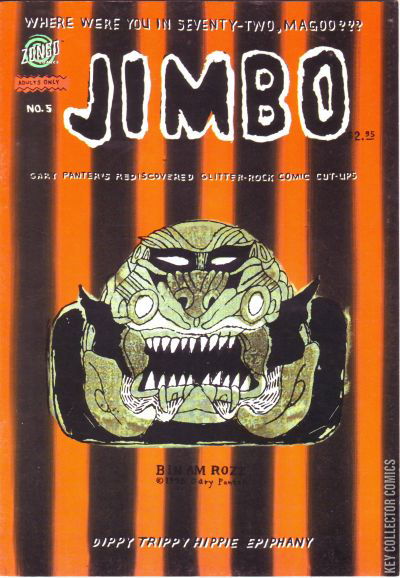 Home / Zongo / Jimbo / Jimbo #5 Zongo Released March 1996 Jimbo #5 Add to Collection Want It Synopsis the publisher is Zongo, not Bongo. Issue 5 of 7 Add to Collection Buy it on eBay Buy on eBay Low $1 Mid $2 High $3 Synopsis the publisher is Zongo, not Bongo. Details Series Jimbo Cover Date March 1996 Pages N/A UPC N/A Cover Price $2.95 Final Order Cutoff N/A Creators No creators listed. Price Guide Log in or subscribe to access detailed graded price information and market insights. Log In Subscribe