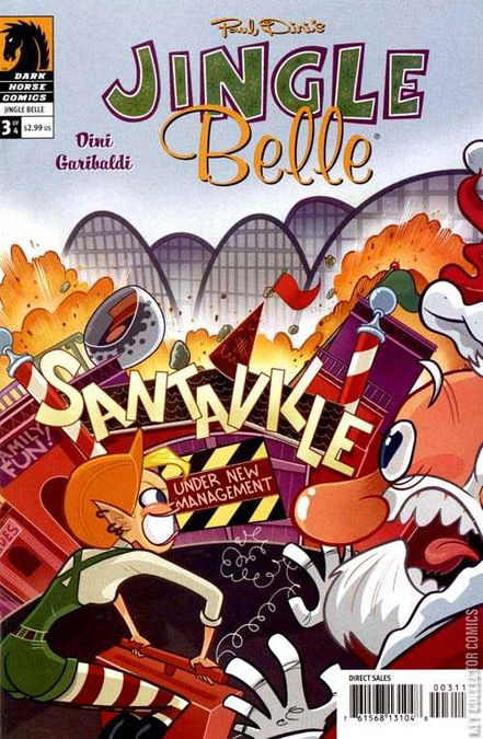 Determined to prove herself worthy of the Claus legacy, Jingle leaves the North Pole to take over a struggling Santaville amusement park. Yet despite Jing's best efforts, the former family fun park is on its last legs and seems destined for the wrecking ball. But when Jing discovers the park owner is Native American, she gets the bright idea to turn the place into a Santa-themed gambling casino! In no time Jing's club is raking in big bucks and attracting big attention - from the mob! Santa's little girl vs. gangsters?! Believe it, baby! Part one of this two-part Jingle Belle epic is written by Paul Dini with art by José Garibald