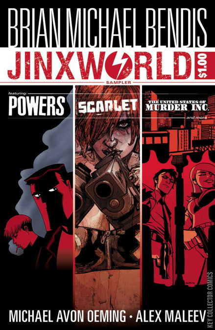 Legendary writer Brian Michael Bendis' Jinxworld line of titles is coming to DC, and to introduce this thrilling world to your customers, DC offers this promotionally priced sampler that reprints SCARLET #1, POWERS #1 and THE UNITED STATES OF MURDER, INC. #1! This amazing comic also includes a brand-new story written by Brian Michael Bendis and illustrated by Michael Avon Oeming that introduces the line of Jinxworld titles!