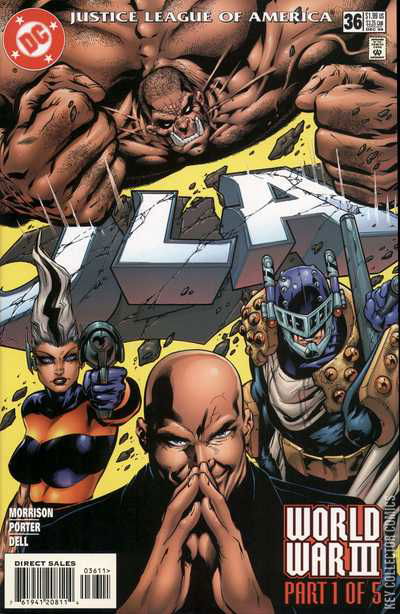 WORLD WAR THREE PART 1 Since the start of the new JLA, there have been hints of a threat on the horizon. Now it has arrived: the doomsday weapon of the Old Gods, the Anti-Sun known as Mageddon! Plus, Lex Luthor's new Injustice Gang!