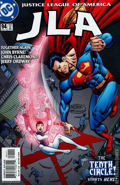 THE TENTH CIRCLE PART 1 - SUFFER THE LITTLE CHILDREN The 10th Circle' forms, as legends John Byrne, Chris Claremont and Jerry Ordway team for a brand-new arc. The JLA investigate a rash of child disappearances—but start to go missing themselves! And who is that mysterious group that seems to be watching their every move?