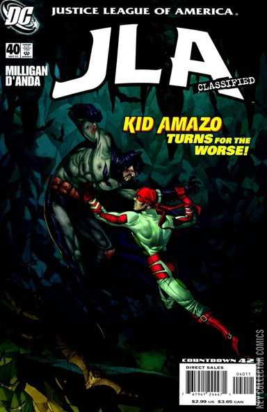 "Kid Amazo, Part 4: Human, All Too Human" Frank Halloran watches as his now ex-girlfriend Sara walks away after breaking up with him. Wonder Woman had told Sara about Frank's true nature as "Kid Amazo" and broke things off, which led Frank to believe that Wonder Woman is evil. Just as he begins to contemplate the philosophical implications of whether his thoughts are his own or just programming when he notices a red blur dash into an alleyway. The red blur was the Flash, who joins the rest of the Justice League just in time to debate whether or not Wonder Woman was right in telling Sara the truth about Frank. Batman believes it was a good call while the Flash would have preferred to have had the group vote on the subject. Regardless Superman suggests that since they're reaching a critical stage in the battle for Frank's soul that the League should begin twenty-four hour surveillance and be ready to respond at a moment's notice. In the shadows Frank watches and then disappears. As Superman and Batman prepare for Frank's eventual attack Kid Amazo begins to revel in what could possibly be his evil side. He uses his powers to get the criminal gang called the Alpha Punks free from police custody on their way to Arkham Asylum, but even in doing that Frank was probably saving them from going crazy there. Batman watches a news feed of the prison break just as Kid Amazo makes his move. After Frank enters Batman's inner sanctum the Dark Knight traps him between two giant steel doors. At first Frank thinks that breaking out will be easy until the green Kryptonite that Batman laced the doors with starts to take its toll on him. Frank manages to escape by cracking Batman's lock, which was a kind of personality profile key. All Frank had to do was access Batman's "abilities" and the rest was easy. The two fight with Frank taking an early lead. He demands that Batman call Wonder Woman to the scene to answer for what she did. Batman tries to reason with him but to no avail. A quick tap of his utility belt allows Batman to send out a high-pitched noise that summons a large number of bats from deep within the cave. Frank flies off and crashes into Sara's house. The police arrive shortly and Frank tells them that all he wants is to deal with Wonder Woman and that she should come in person and alone or Sara gets hurt. Sara, like everyone else, tries to reason with him and insists Wonder Woman won't come. Frank gives her an ultimatum; take him back or he'll kill Wonder Woman. Sara informs him that his behavior is rather pathetic. Frank fires back that his reaction is very human and that people have been turned bad for worse reasons. Wonder Woman and Flash get to Sara's house first. After telling Flash that Frank really doesn't want to hurt her Wonder Woman is tackled by Kid Amazo and the two begin to fight. Wonder Woman yells for the Flash to get Sara to safety just as the rest of the League appears. Batman tells him that while he may be the son of Amazo with the ability to replicate each of the League's individual powers there is something else he needs to know.