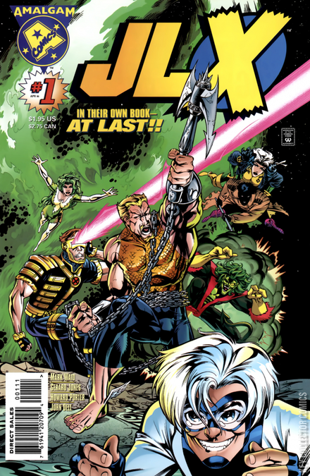 A LEAGUE OF THEIR OWN! In order to save two universes, the young hero known as Access was forced to use the power of Amalgam (see Marvel versus DC (1996) #3). In this issue, members of the X-Men and JLA are merged to create Mariner (Aquaman/Sub-Mariner), Mercury (Quicksilver/Impulse), Night Creeper (Nightcrawler/Creeper), and others must stand against Will Magnus (William Stryker/Professor Magnus) and his deadly robotic Sentinels.