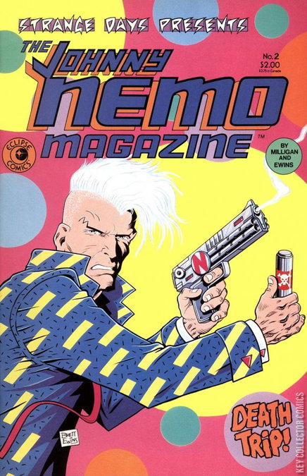 Strange Days presents...The Johnny Nemo Magazine! This issue, it's a death trip! Featuring: Johnny Nemo in "The Spice of Death" (part 2 of 2). Plus: Sindi Shade in an untitled back-up story (part 2 of 3). And: 1-page article "Milligan's Endgame" by Peter Milligan