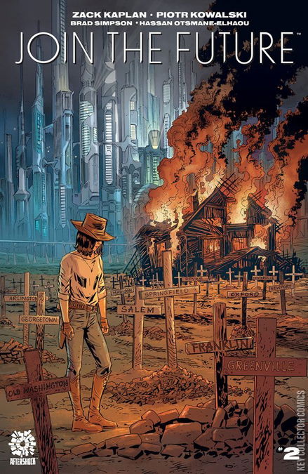 The Future. Where ultramodern megacities flourish while rural American towns strug-gle to survive. After an attack by high tech mercenaries, the small community of Frank-lin vacates its township and starts moving its people to the city. This sends the Mayor's strong-willed teenage daughter, Clementine Libbey, on a quest of revenge and re-sistance as she challenges the city's control, while clinging to her small town princi-ples. Come join her adventure in this sci-fi western. Come join the future. Written by Zack Kaplan (LOST CITY EXPLORERS) with art from Piotr Kowalski (Sex, Marvel Knights: Hulk, The Dark Tower), JOIN THE FUTURE is a sci-fi western that ex-amines a tomorrow where everyone must ask what your values are truly worth.