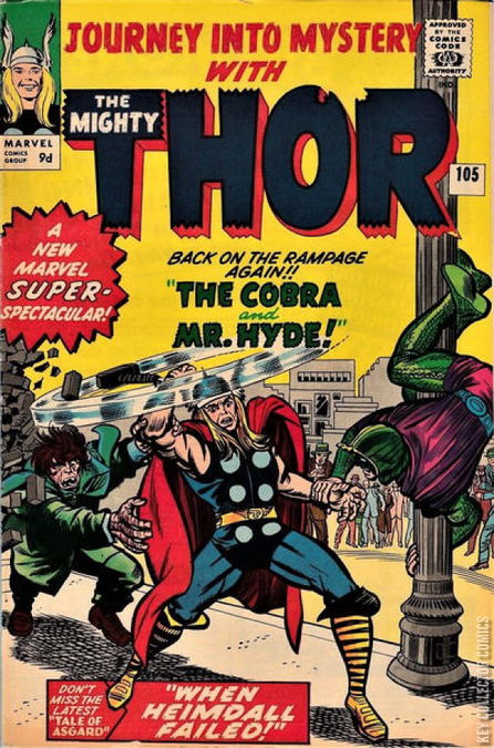 "The Cobra and Mr. Hyde!" - When Cobra picks a random victim, it just happens to be scientist Calvin Zabo - AKA Mr. Hyde! Initially the two fight each other, but they soon team up to defeat their common enemy: Thor!Marauder - In the early days of World War II, the German cruiser Emden makes a sneak attack on the remote port of Penang!Tales of Asgard: "When Heimdall Failed!" - King Brimer and Queen Nedra employ a scout that can bypass even the ever-watchful Heimdall!
